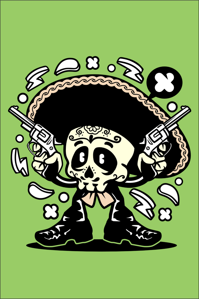 Kinder Design Sombrero Skull Cartoon